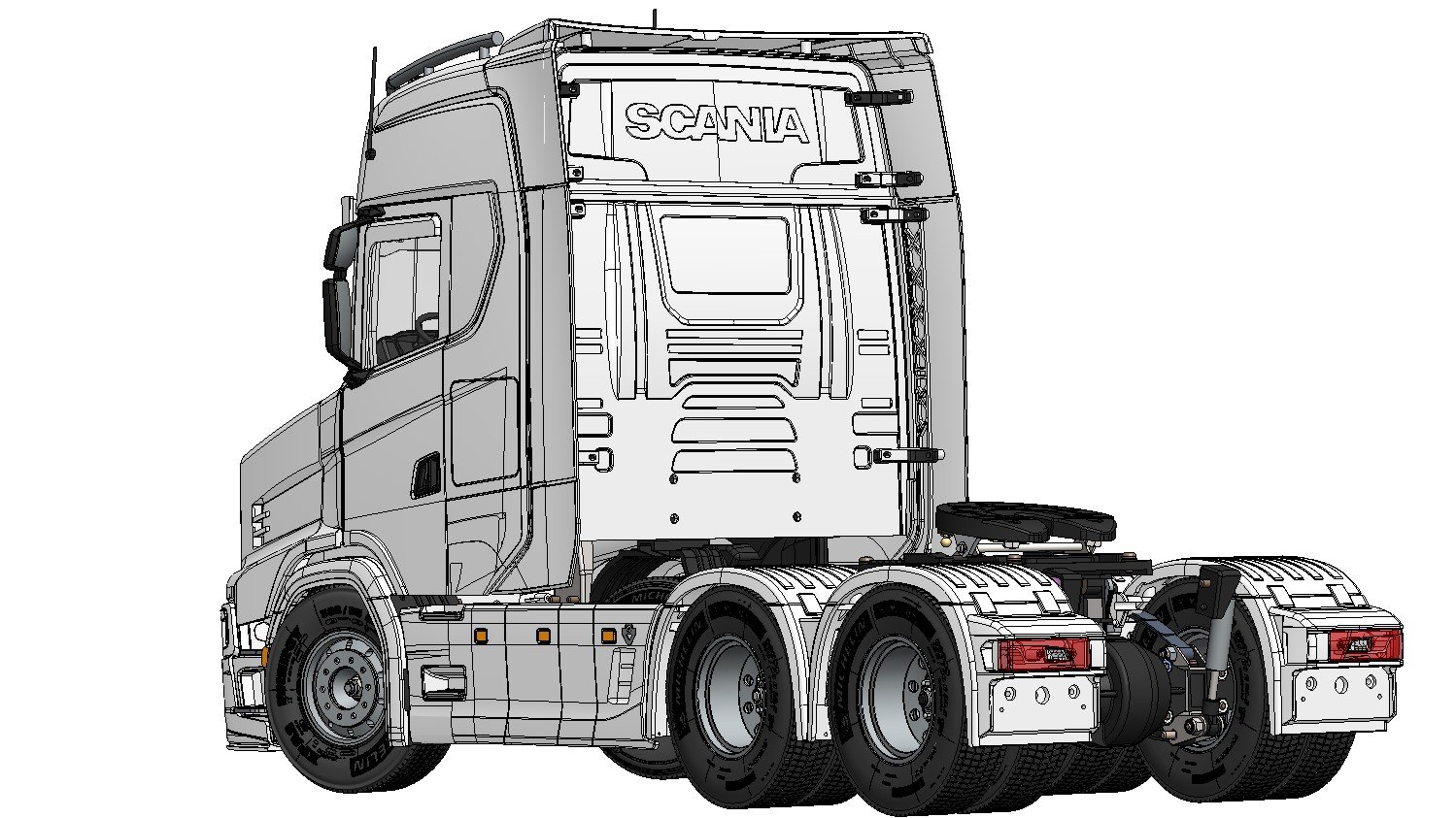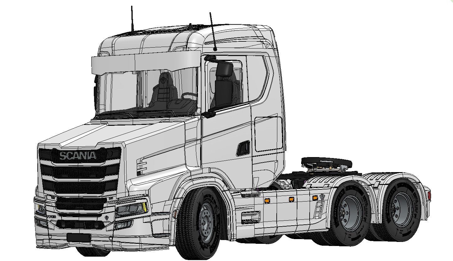 Converts 1:14 scale Tamiya Scania S770 into a Scania T Series (Torpedo)