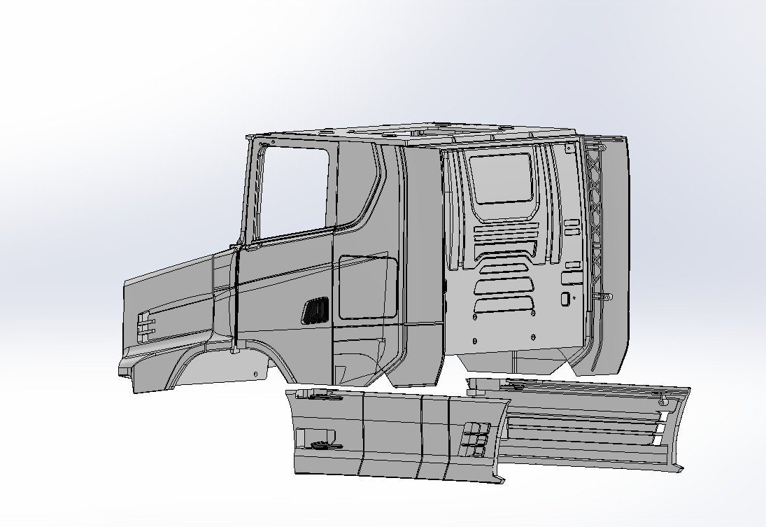 - Included parts: long-nose cabin and detailed front grill spoilers also a base plate is included please see images for reference. Note: If you need sideskirts for a 3 axle or 2 axle truck you can order this separatly (in the category spoilers)